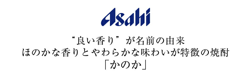 かのかは「その日一番のやすらぎの時を与えてくれる焼酎」をコンセプトに生まれた焼酎です。そこで注目したのが「香り」でした。「かのか」の名前の由来も「よい香り」という意味から、「かのか(佳の香)」と名付けられています。そのおいしさの秘密は、優良酵母を用いて、低温で丁寧に醸造したもろみからつくられる「香り蒸溜焼酎」がもたらす豊かでやさしい香り。かのかは、飲みやすさや食事との相性などを考え、この香り蒸溜焼酎をはじめとする、数種類の焼酎をブレンドしてつくられています。