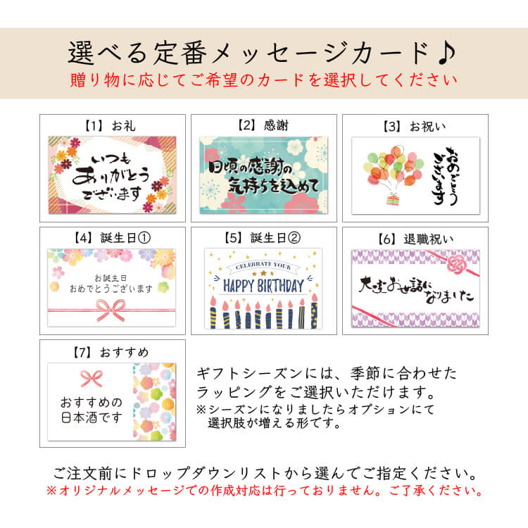 誕生日 記念日 引越し祝い 新築祝い 就職 昇進 退職 バレンタイン ホワイトデー 定年退職 記念品 退職祝い プチギフト お礼 出産祝い 結婚祝い 父 母 母の日 父の日 敬老の日 結婚祝い 内祝い お返し 還暦祝い 古希祝い 御中元 お歳暮 御歳暮 お年賀 お正月 年越し 年末年始 クリスマス プレゼント などなど。贈答品・ギフト・プレゼントにピッタリな日本酒の飲み比べセットも多数ご用意しております。包装・のし・メッセージカード(一部ラッピング不可商品あり)も無料で承っております。